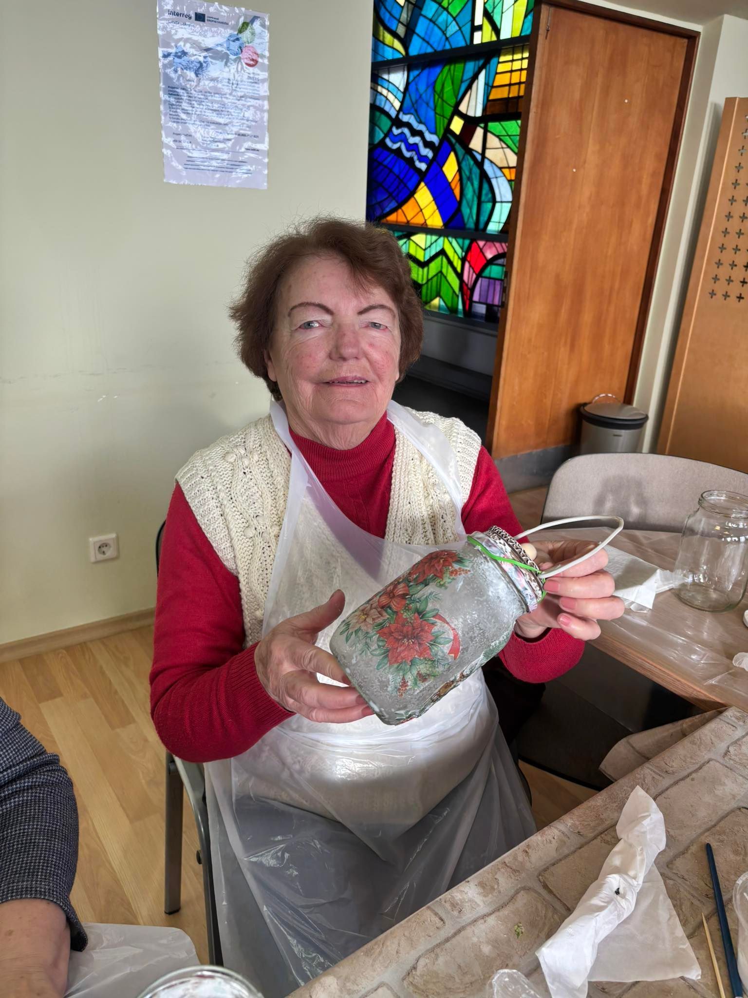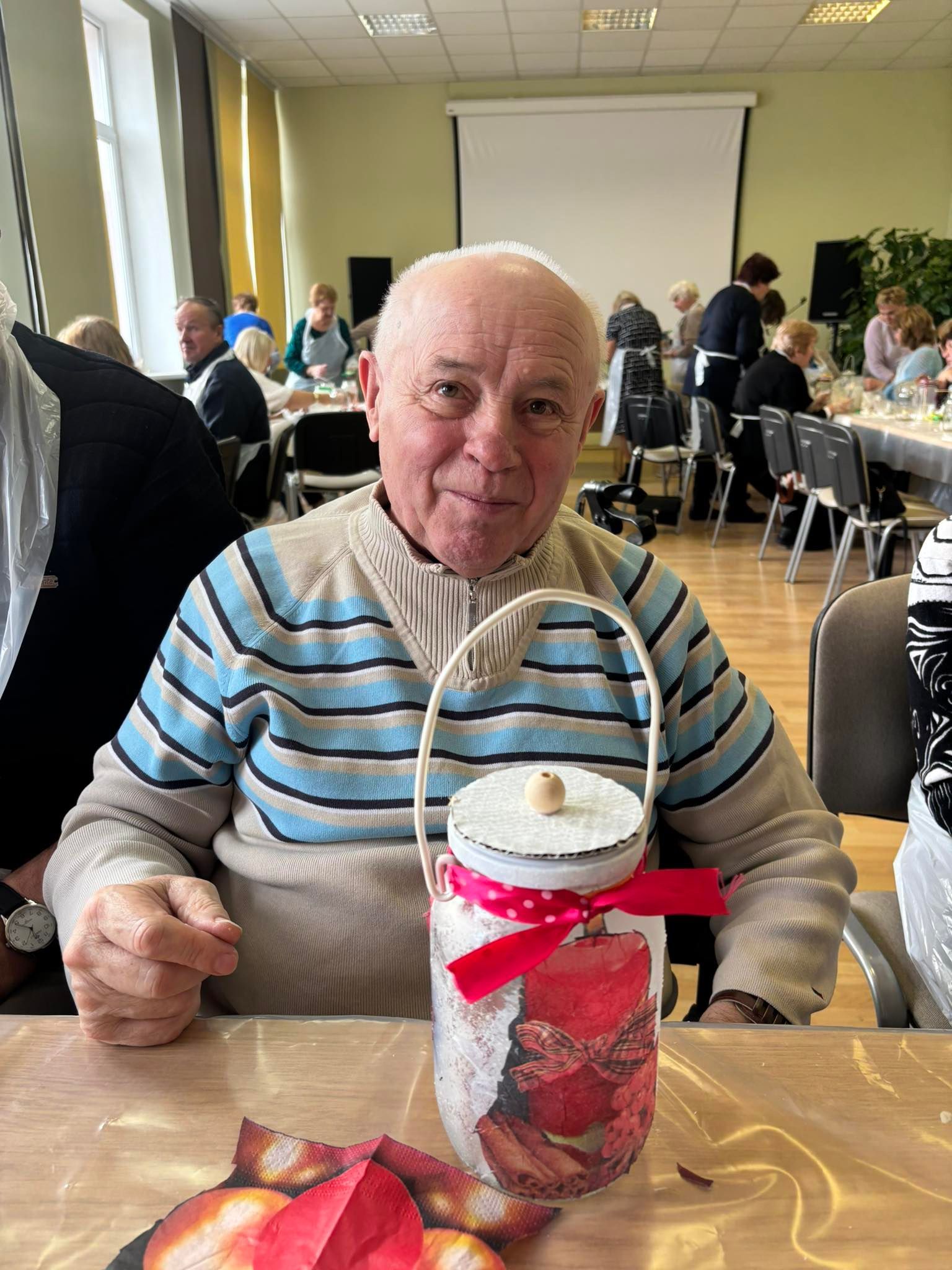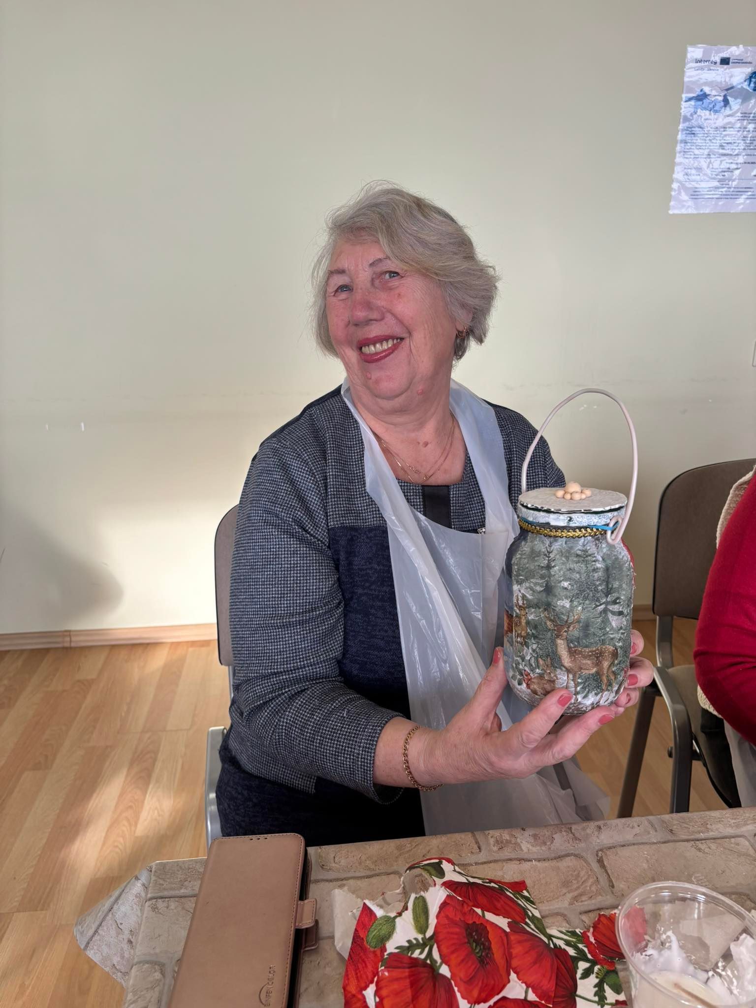 Lapkričio 6 d. Duobelėje dalyvius pasitiko Duobelės savivaldybės socialinės tarnybos dienos centro „Stariņš“ vyresnio amžiaus žmonėms vadovė Daiga Rapša. Svečiai susipažino su centro veikla ir vietos senjorų užsiėmimais. Vėliau senjorai ir projekto darbo grupės nariai dalyvavo kalėdinių žibintų dekupažo meistriškumo klasėje, kurią vedė Alona Pisareva. Dalyviai entuziastingai kūrė kalėdinius žibintus – dovanai sau ar artimiesiems. Kūrybiška ir bendradarbiavimu grįsta atmosfera suvienijo svečius iš abiejų šalių.