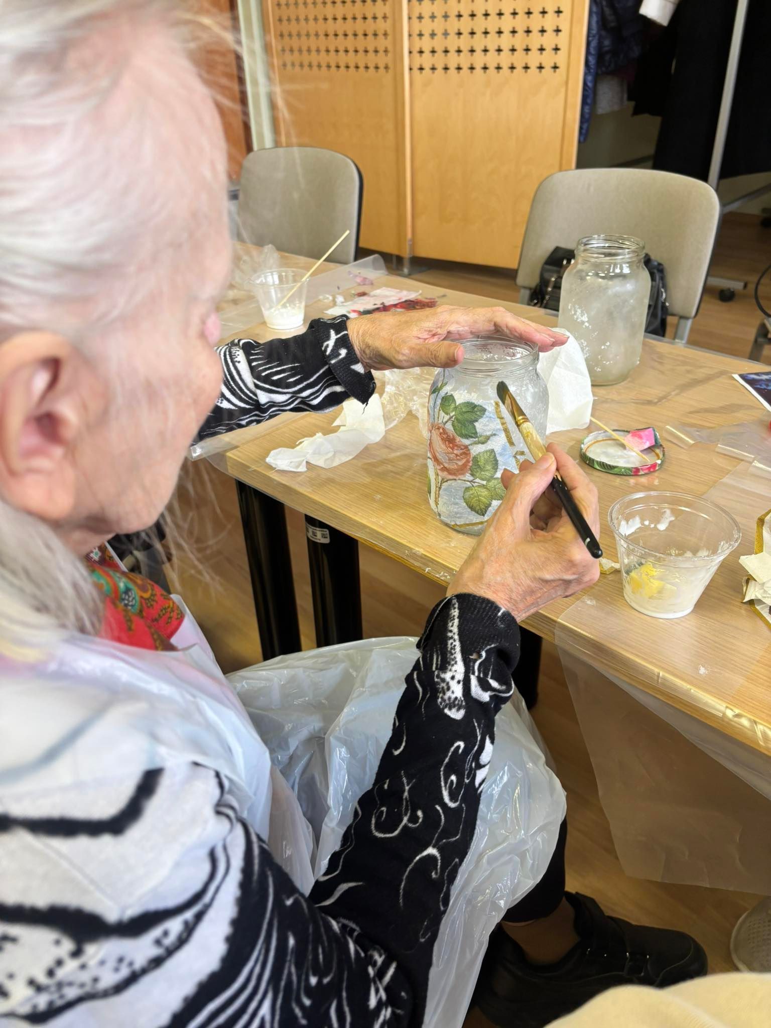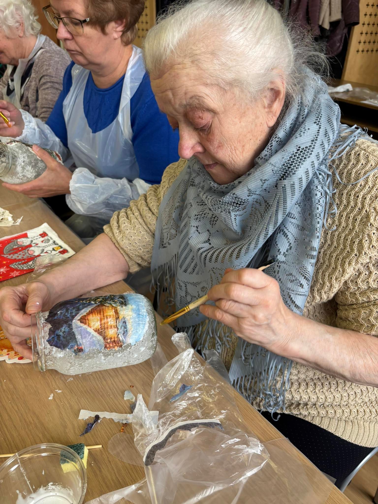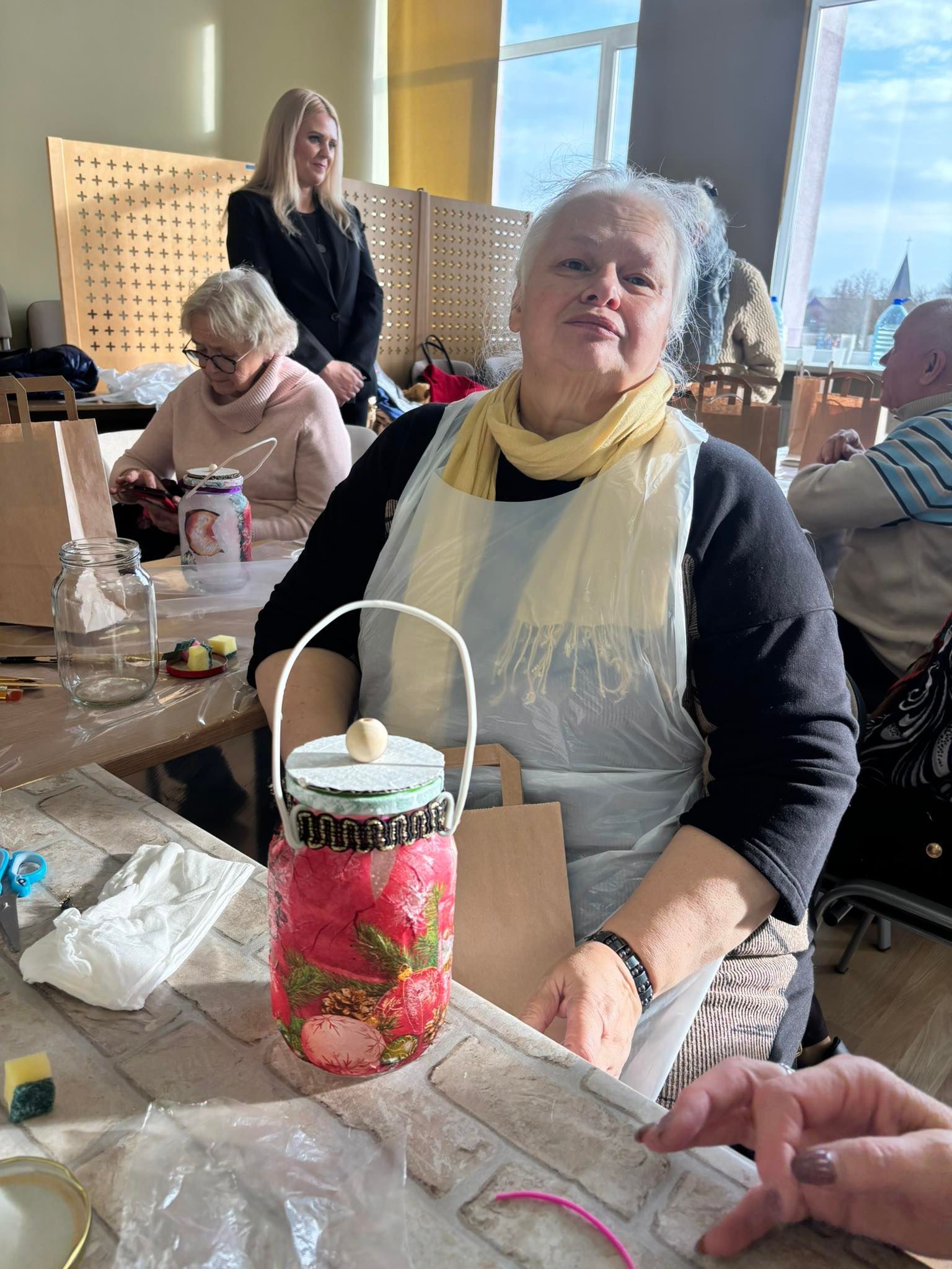Lapkričio 6 d. Duobelėje dalyvius pasitiko Duobelės savivaldybės socialinės tarnybos dienos centro „Stariņš“ vyresnio amžiaus žmonėms vadovė Daiga Rapša. Svečiai susipažino su centro veikla ir vietos senjorų užsiėmimais. Vėliau senjorai ir projekto darbo grupės nariai dalyvavo kalėdinių žibintų dekupažo meistriškumo klasėje, kurią vedė Alona Pisareva. Dalyviai entuziastingai kūrė kalėdinius žibintus – dovanai sau ar artimiesiems. Kūrybiška ir bendradarbiavimu grįsta atmosfera suvienijo svečius iš abiejų šalių.
