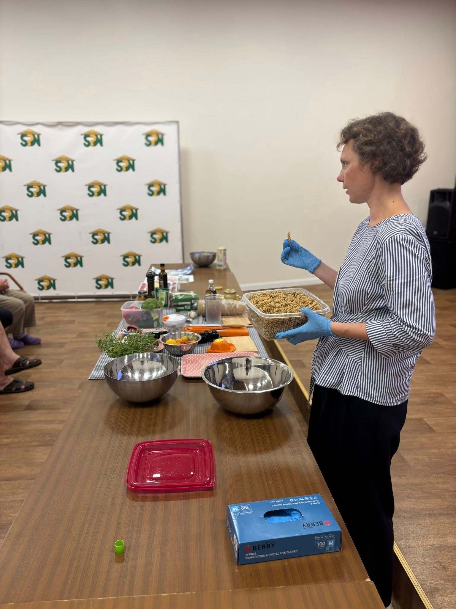 Kad paskaita nebūtų vien teorinė, Ilona atvežė sveikų produktų ir jų pagrindu paruošė du skanius bei maistingus patiekalus – itališkas makaronų salotas ir chia sėklų pudingą.