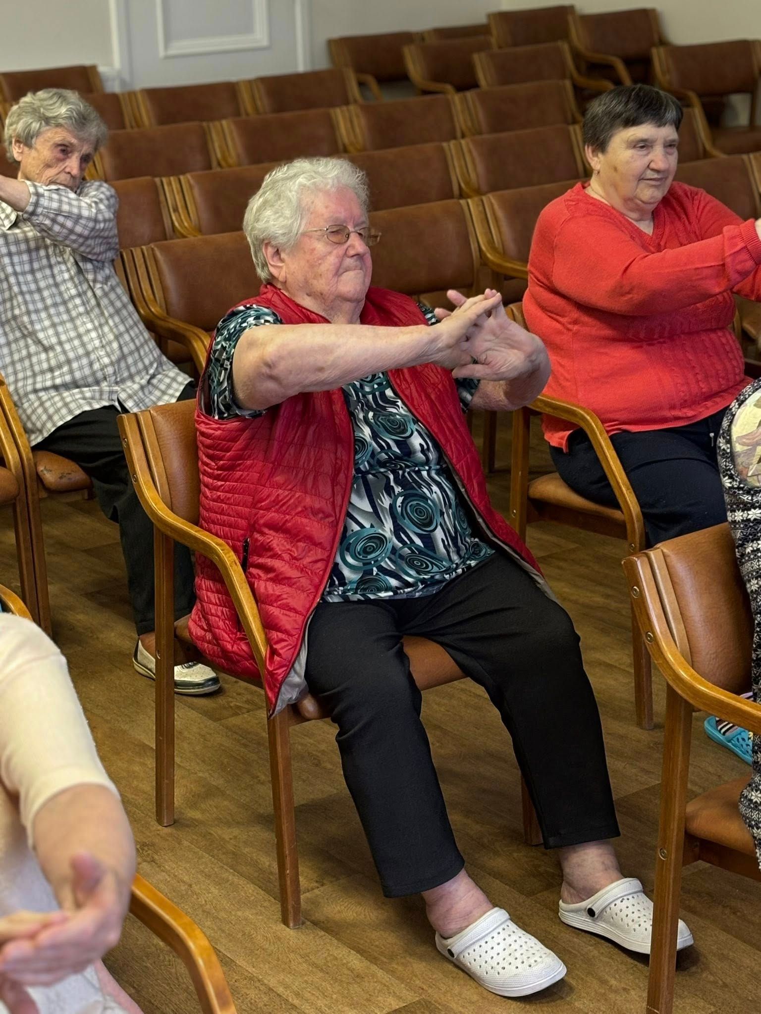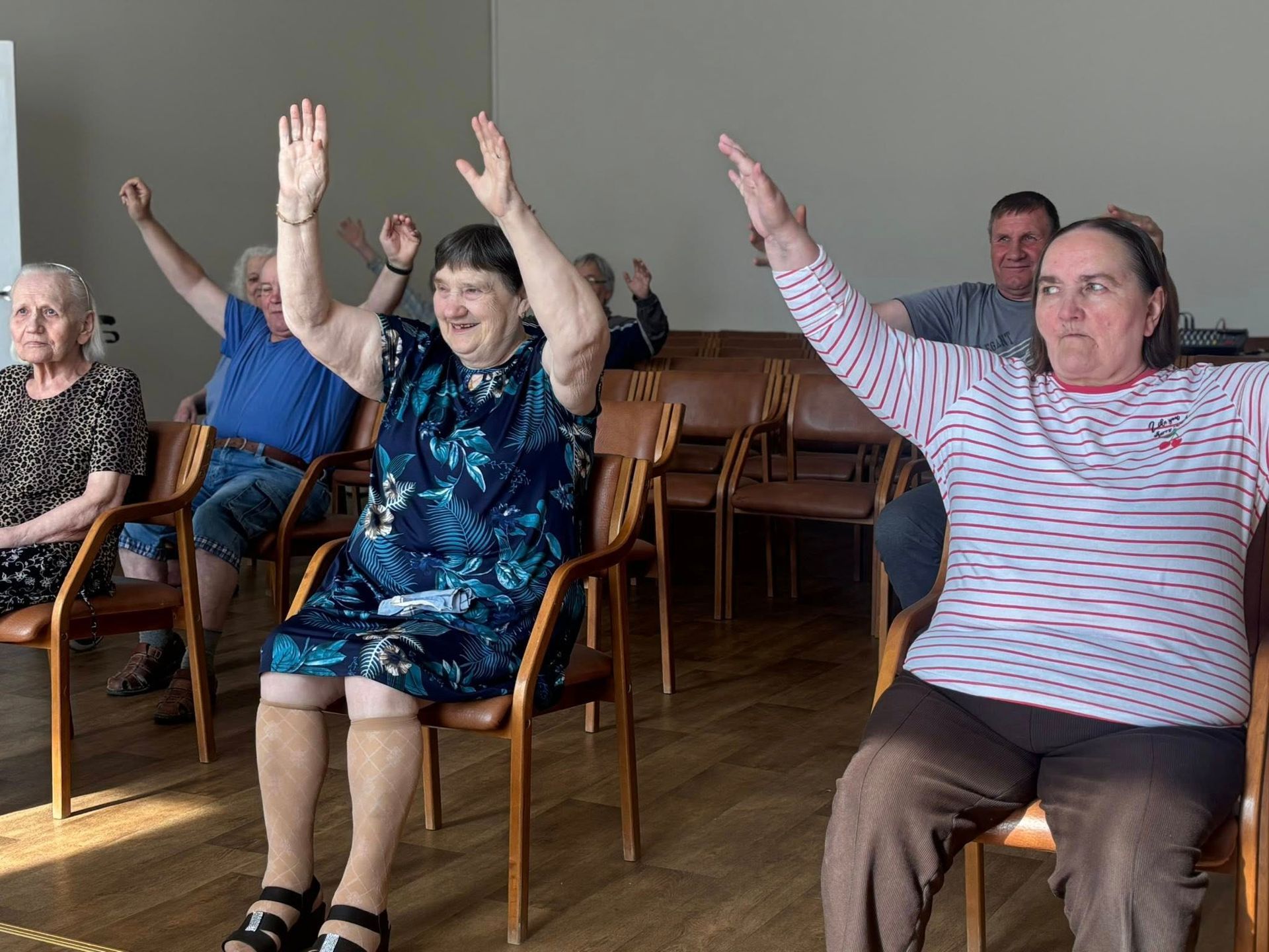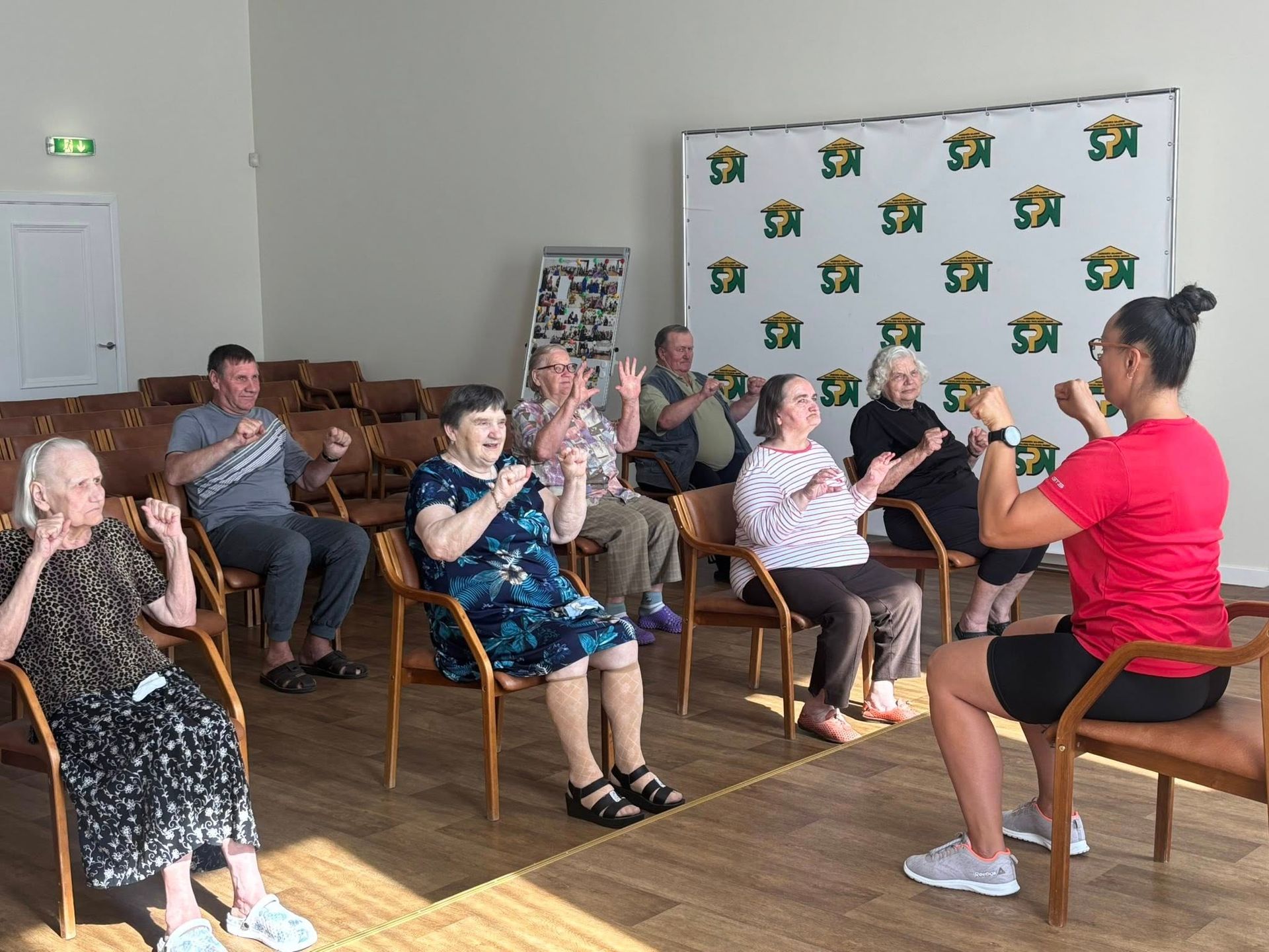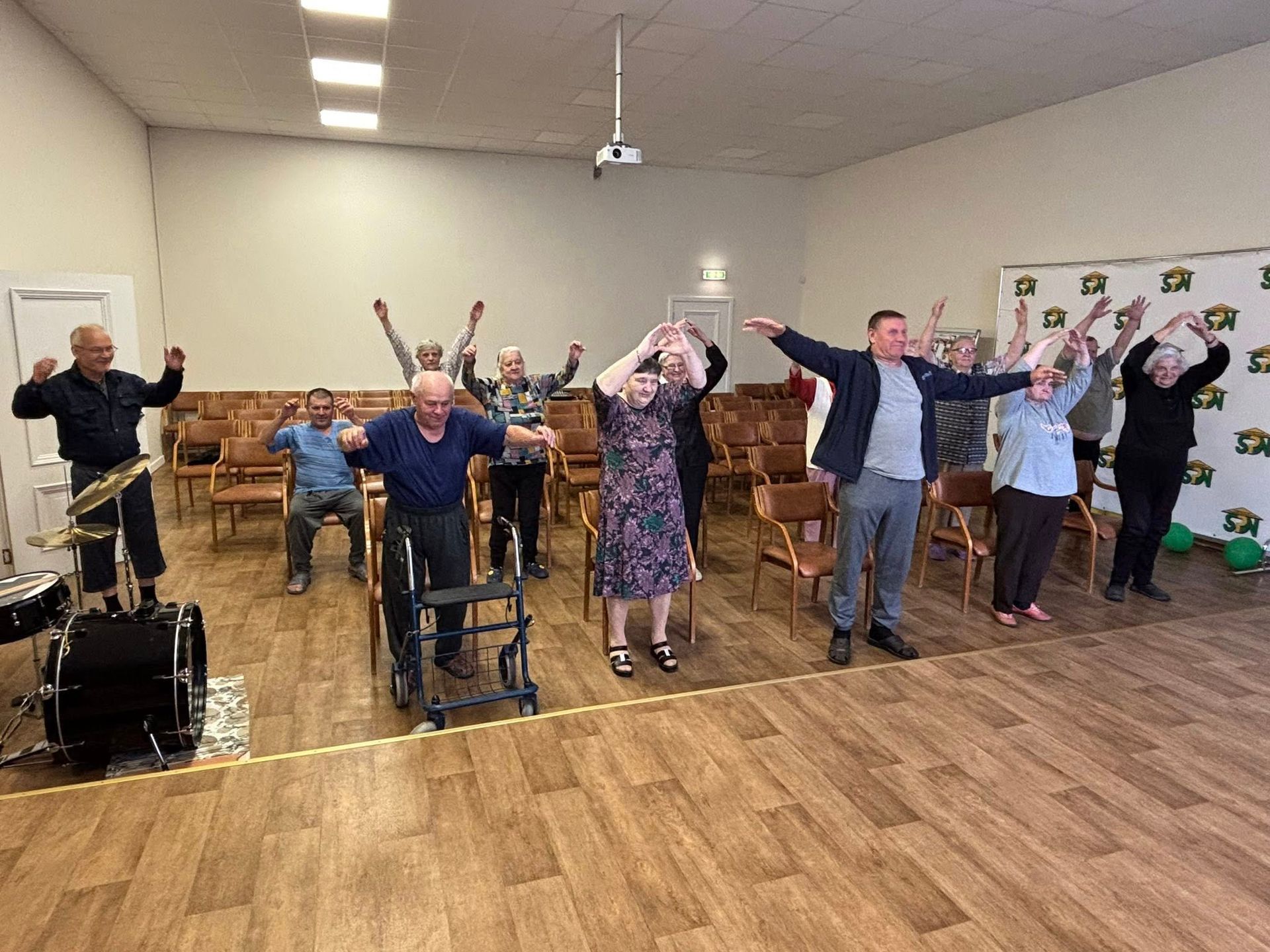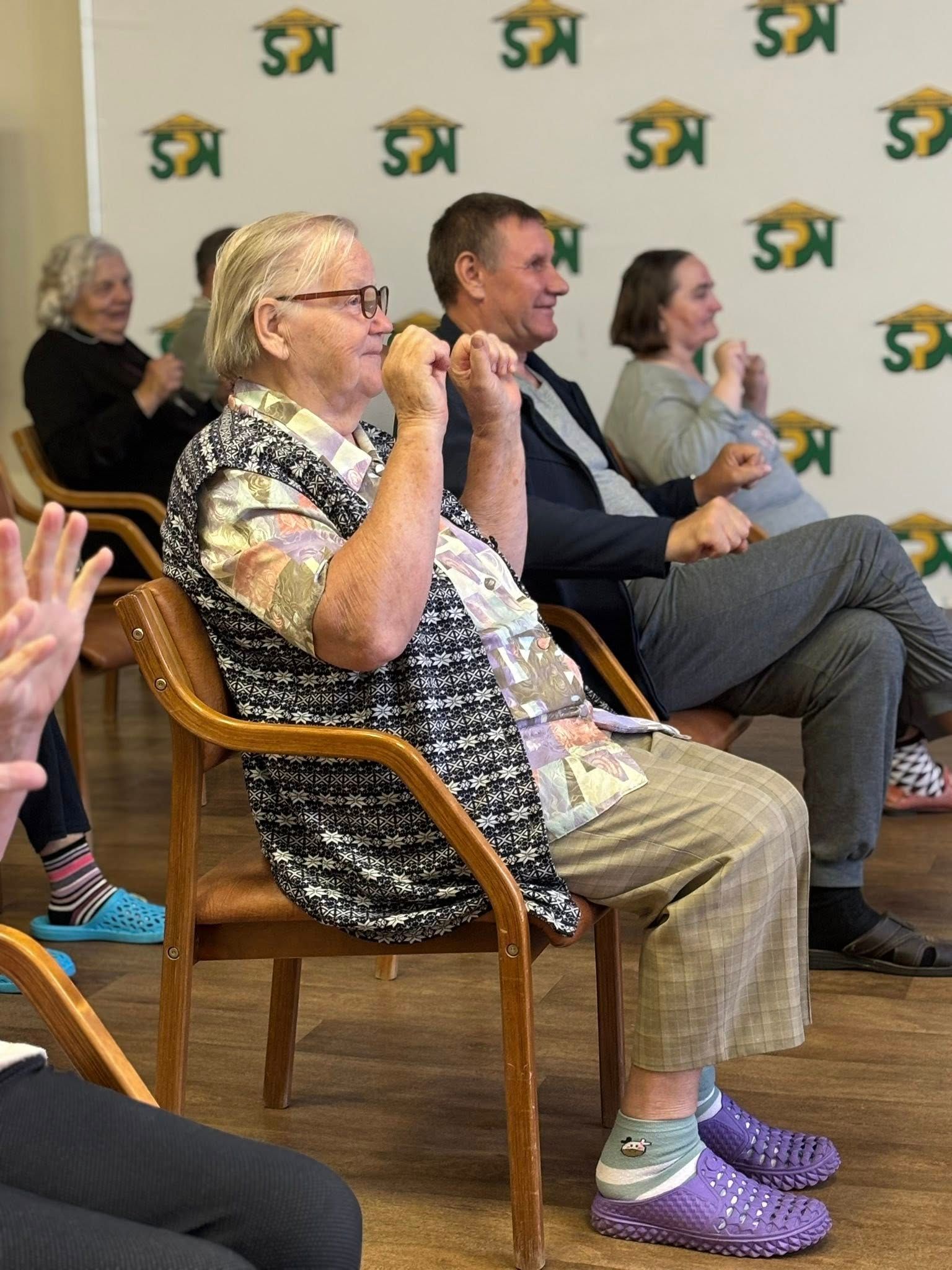 Na, o specialistė priminė, kad kiekvieną rytą būtina skirti laiko lengvai ir greitai mankštelei. Visi iškart susidomėjome: o kokia gi ta „lengva ir greita“ mankštelė? Ilgai laukti neteko — Skaistė ne tik papasakojo, bet ir pademonstravo! Judėjome visi kartu!