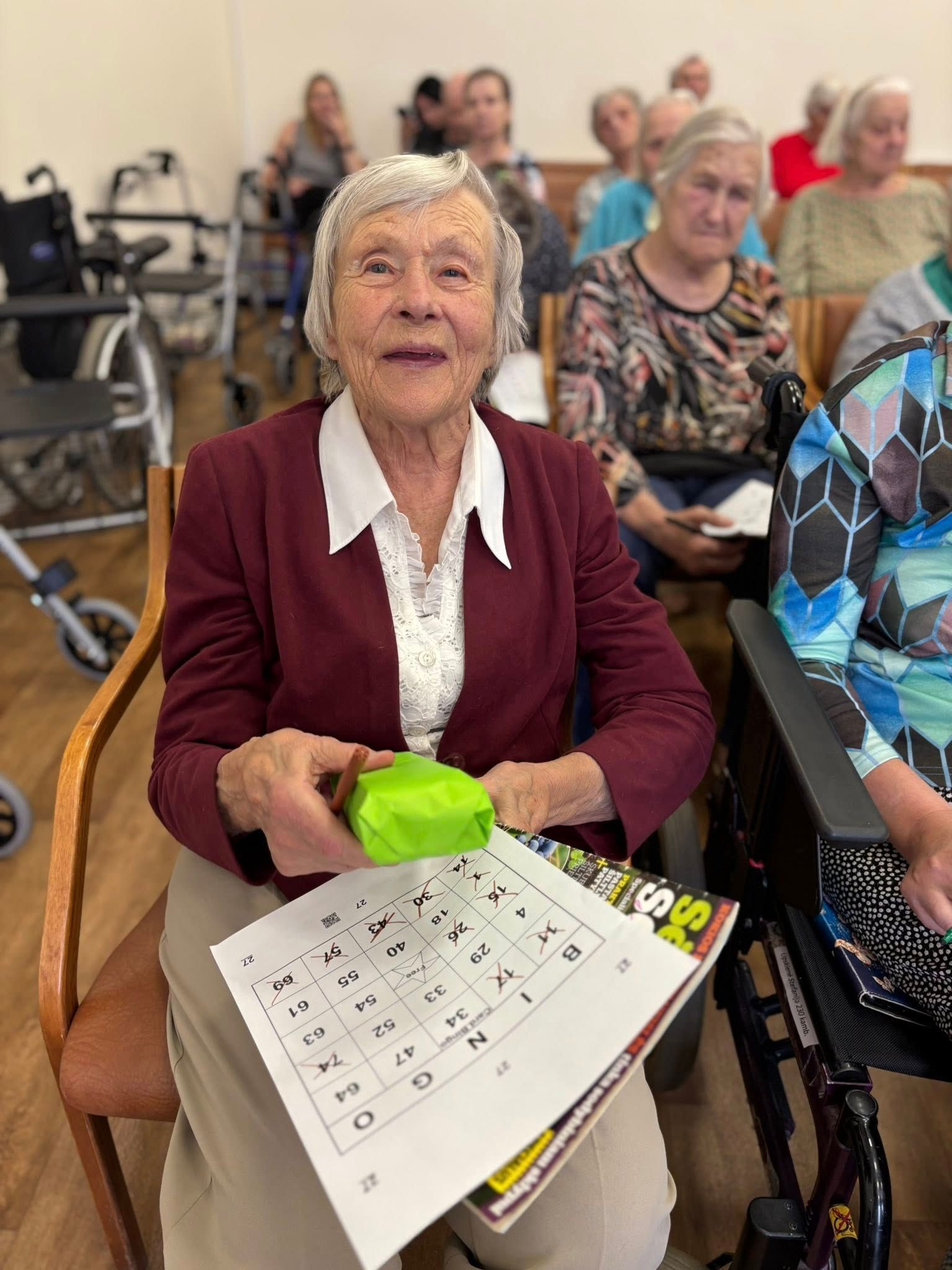 Bingo kova vyko tarp gyventojų ir darbuotojų – profesionalai prieš naujokus. Ir drąsiai galime pasakyti: mūsų profesionalai gyventojai šįkart buvo nenugalimi! Visi prizai atiteko mūsų karaliams ir karalienėms. Aukso puodą laimėjo - Albinas Skiotys.