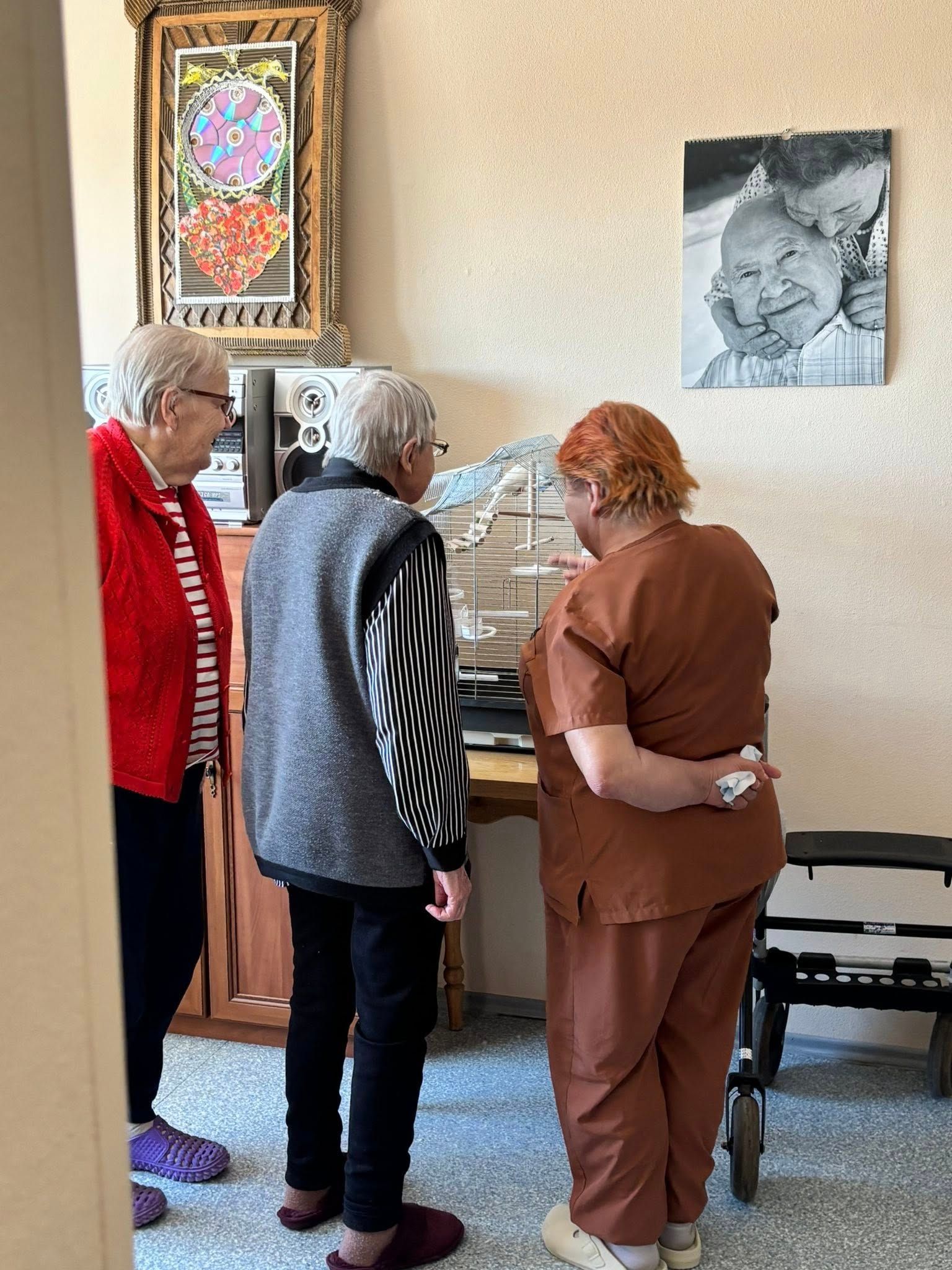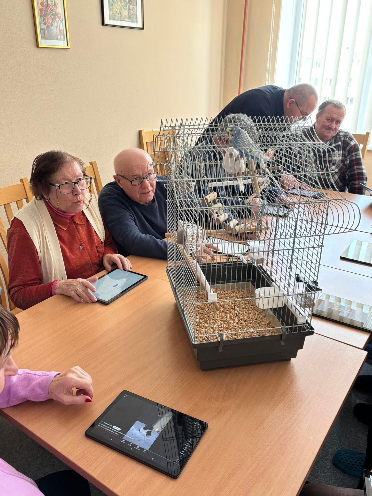 Kompiuteriniai užsiėmimai su staigmena! Šiandien mūsų namai užsipildė paukščiukų čiulbėjimu! Mūsų bendruomenės namus papildė nauji „šeimos“ nariai – papugėlės. Už šią galimybę nuoširdžiai dėkojame Justinai Sinkevičienei. Džiaugsmas nušvito tiek gyventojų, tiek darbuotojų akyse.