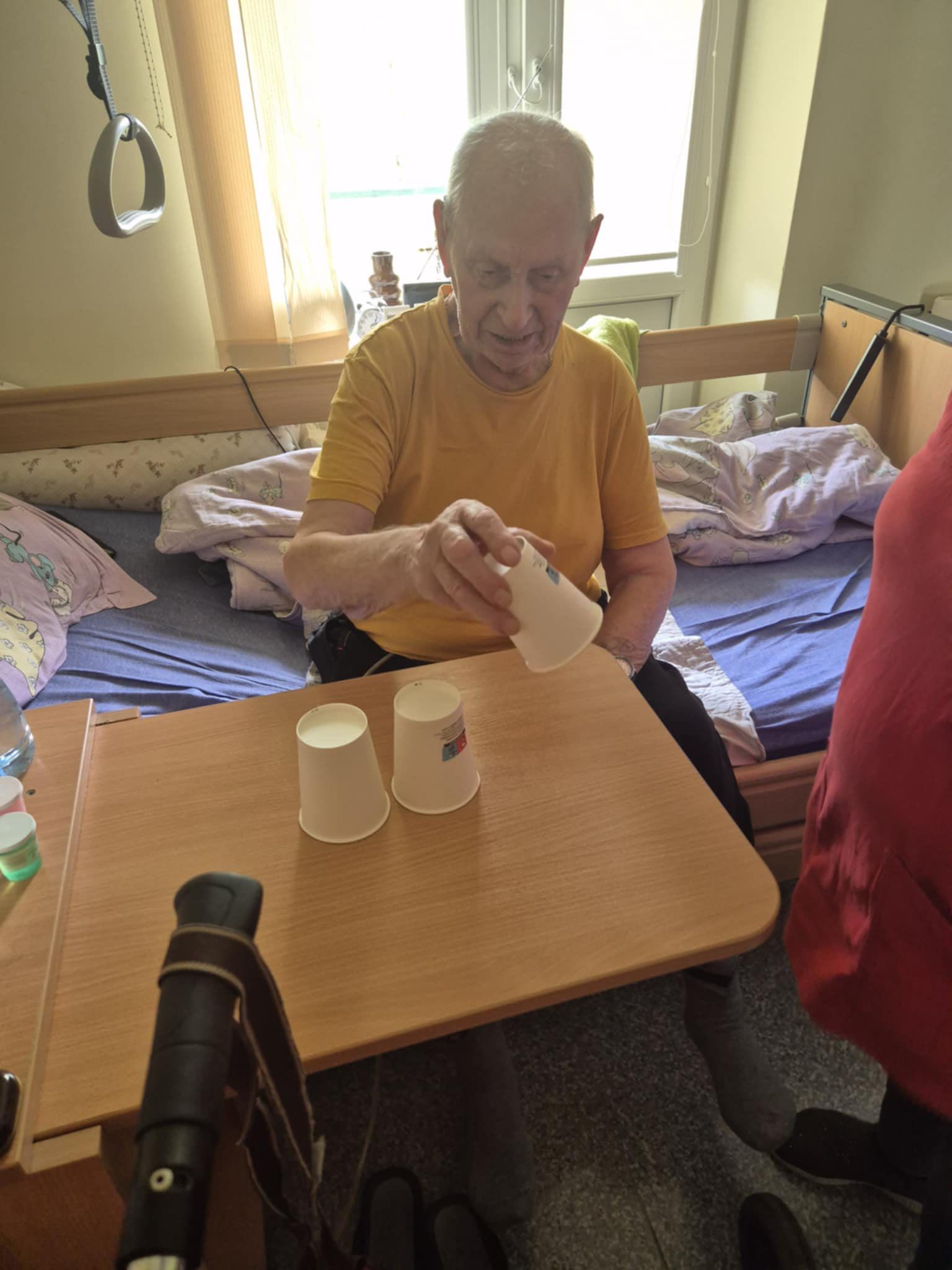 Pirmoji veikla – „Dalyba“. Paslaugų gavėjai turėjo vienodai paskirstyti sultis į tris stiklines. Užduoties metu buvo lavinama smulkioji motorika, skatinamas savarankiškumas kasdienėse veiklose, taip pat reikėjo pasitelkti loginį ir matematinį mąstymą.